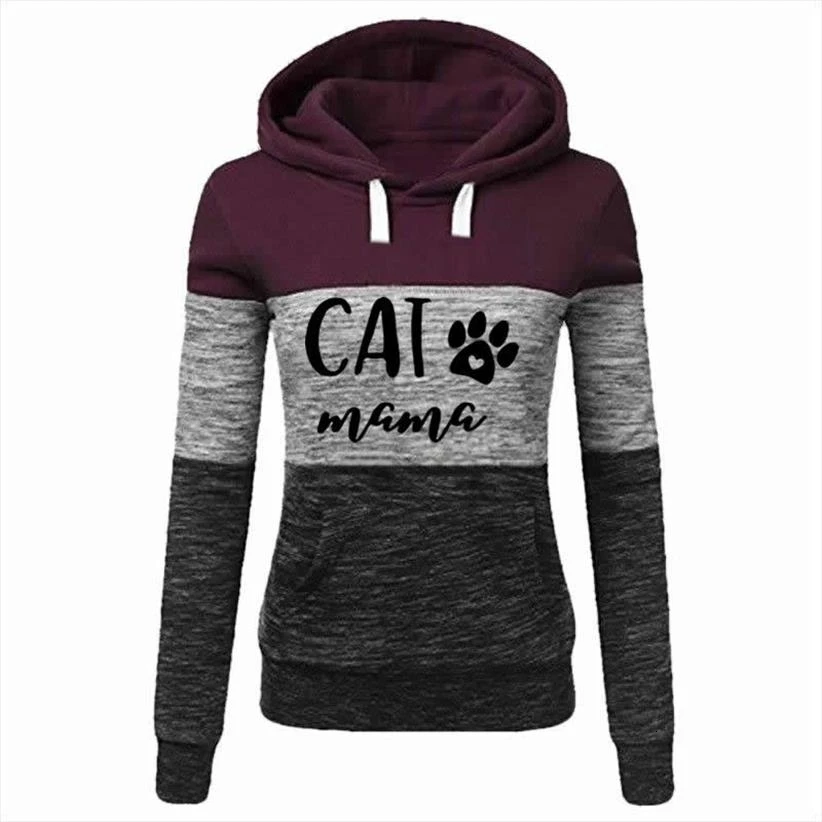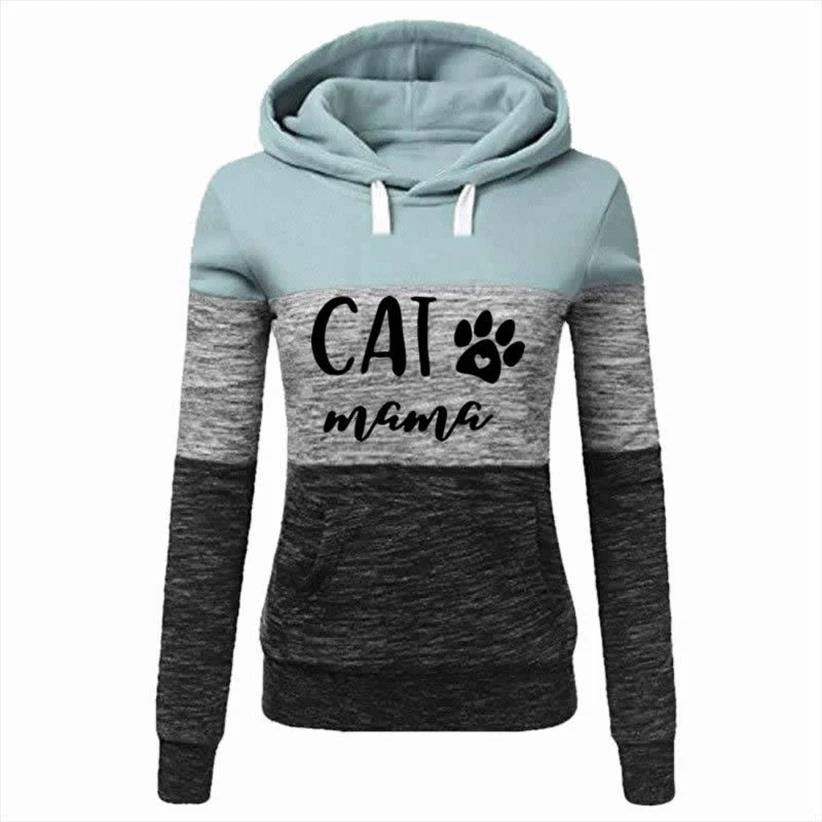 Promo Hoodies For Women Splice Cat Mama Letters Print Sweatshirts Hoodies Kawaii Tops Hoody Frauen Clothi